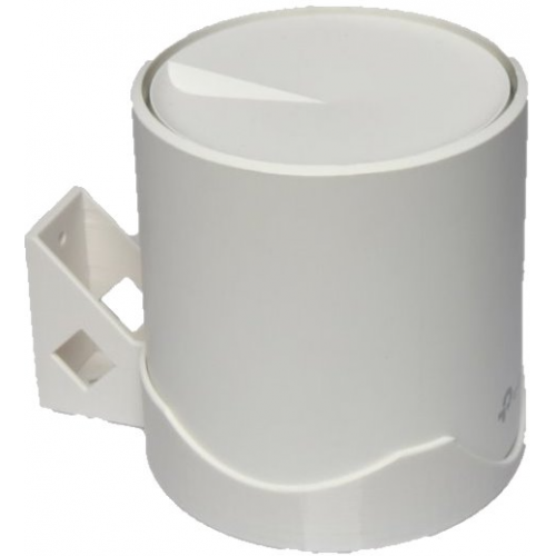 The holder is designed to attach TP-Link Deco X20, Deco X50 and X60 wireless units to the wall using two screws. The holder is made of PETG material on a 3D printer and the colour is white.
