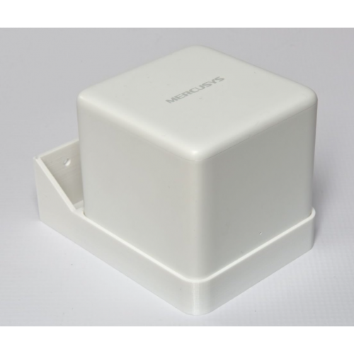 The plastic wall mount is designed to mount Halo H50 / H30 / S12 / S3 Mesh Access Points from Mercusys. The holder is made using 3D printing, has a white color and its dimensions are 123 × 40 × 91mm.